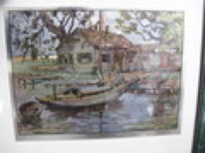 Item Description 1. Lot of (3) framed LIONEL BARRYMORE etchings. 7 1/2"x 5 3/4" 2. Vintage 9" tall Glass Clown Jar full of vintage thread. Lid is missing insert. 3. Vintage Lighted Pumpkin/Cat. Pumpkin face has some issues as shown. Measures 35" tall. 4. Pair Vintage Samsonite folding chairs in very good condition. 5. 15"x11"x9" vintage Footstool. Metal legs. Very good condition. 6. Vintage BUCK-A-ROO Game. In very good working condition. 7. Glass Jar of Vintage Marbles. 8. New MARTHA STEWART Bowl Set. 9. Vintage A.O. DELINEASCOPE Slide Projector in excellent condition. Includes some slides. 10. Lot of (20) HOT...