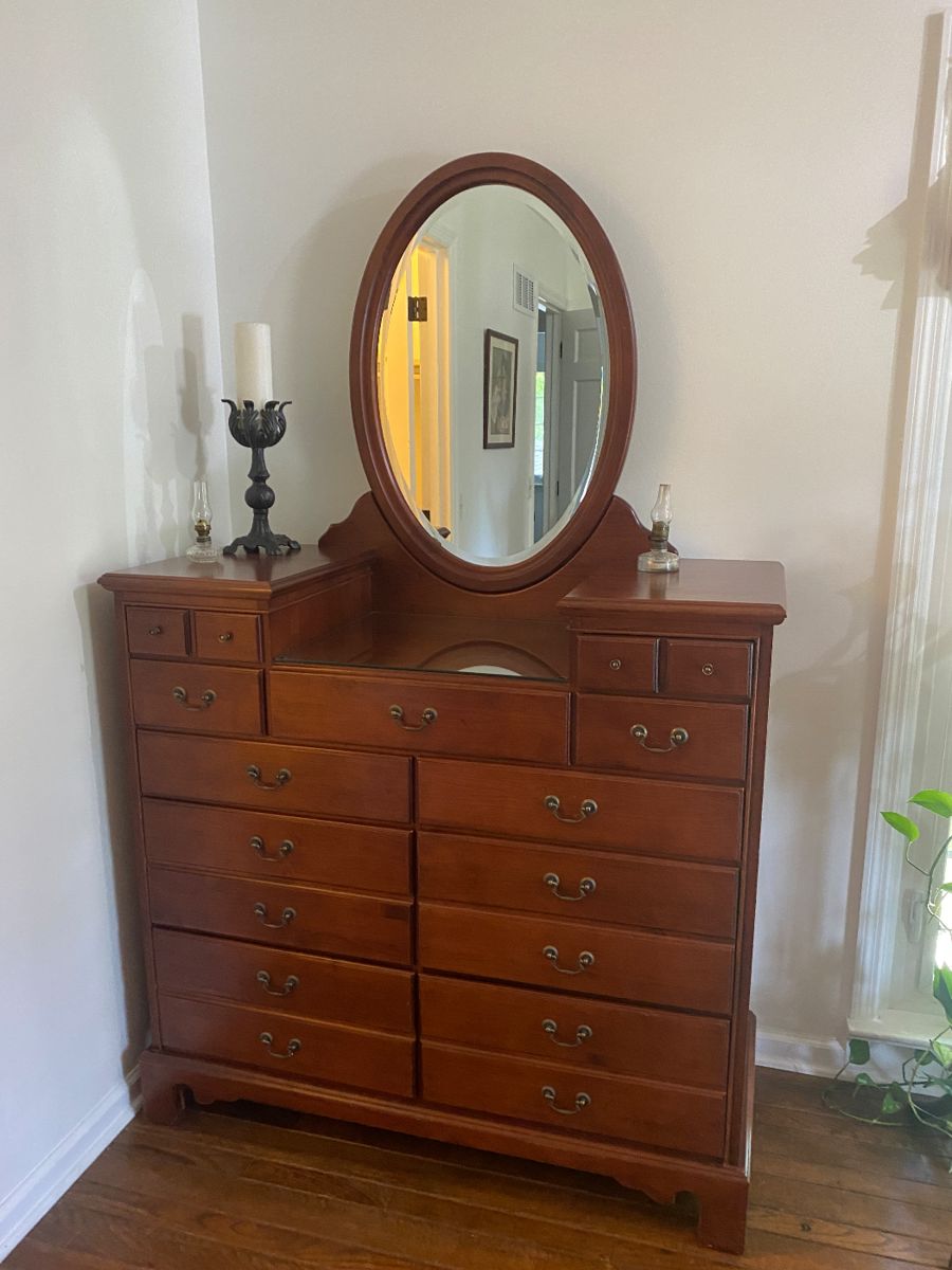 Beautiful Estate Sale in Hills Dales! One king size bedroom set with long & tall dresser, 2 queen size beds, multiple tall dressers, accent tables, night stand, vintage Barbie items, treadmill, paintings, couch, small kitchen table with 2 chairs, 3 barrister bookcases, 2 antique glass front curios, buffet, sowerby glass, chalice 12” crystal vase, bohemian ruby red glass vase, american tankard pitcher, Lancaster glass open work clear luncheon plates, Russian khokhloma, Laguiole steak knives, lots of Lenox, Cerutil avocado large bowl, lead crystal deco style ice bucket, Broyhill chinoiserie cabinet, kitchen items, patio chairs, meta glider, yard decor, games, and...