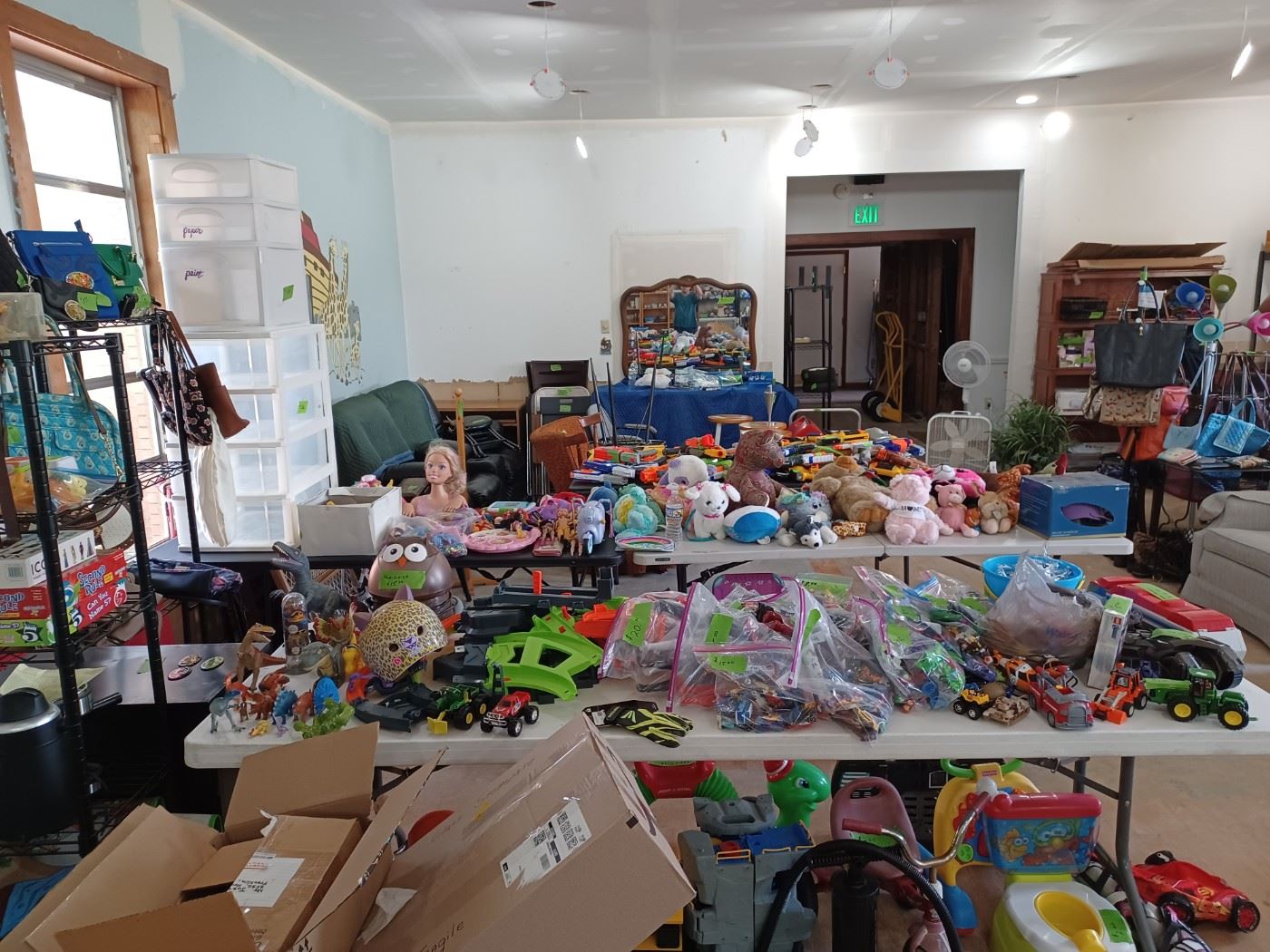 Lots of Interesting items from toys, to mowers to a whole house of clothes. Public Restrooms, soda and water available.