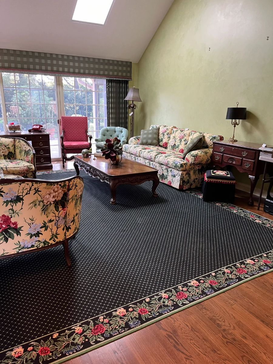 A very well-appointed home with great furniture and decorator touches! Furniture: Black lift-top bench Harden lowboy Small stool w/ needlepoint top Carved back chair Small pie crust table Black chest (gold stencil, 3 drawers) Large coffee table w/ carved leg Custom upholstered sofa Pair of custom upholstered vintage loveseats Large stool w/ mirror top Pair of director chairs Patio table Upholstered sofa & swivel armchair Pair of wing chairs Custom upholstered wing chair Large Hekman writing desk Sligh kneehole desk Mastercraft 6 piece twin bed set Antique chest w/ drop pulls King bed w/ carved posts Assorted floor and table...