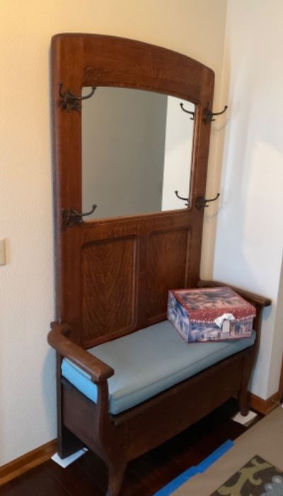 CLEAN SYLVANIA HOME WITH SOMETHING FOR EVERYONE: Antique Tiger Oak Hall Tree, Two Leather Recliners from Fine Designs, Two Leather Side Chairs, Floral Upholstered Chair by Clayton Marcus, Two Upholstered Side Chairs, Wingback Chair and Ottoman, Media Stand, End Tables, Oak Dining Table with Six Chairs, Oak Corner Curio, Wicker Sofa, Two Chairs, Ottoman, Sofa Table and End Tables, Numerous Stand, Cabinets and Bookcases, Four Poster Queen Bed Frame, Maple Kneehole Desk, Vintage Dropleaf Table with Three Chairs, Lamps, Rugs, Art Prints, Pioneer Tower Stereo System with Turntable, Electronics, Flat Screen TV, CDs, DVDs, Books, Collectibles by Williraye and Carruth,...