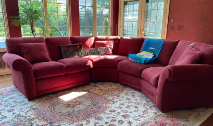 ANOTHER GREAT SALE IN OTTAWA HILLS TO INCLUDE: Two Oriental Rugs (approximately 12x14 each), Suede Cloth Sectional and Matching Recliner, Painted Electric Tall Case Clock, Two Leather and Upholstered Recliners, Two Slipper Chairs, Three Drawer Chest, End Table with Marble Top, Sofa Tables, Blue Leather Recliner, Black Painted Cabinet/TV Stand, Iron Bakers Rack, Dinette with Four Chairs, Green Cabinet with Glass Door, Harden Four Poster Bed, Wardrobe, and Nightstand, Vanity with Stool, Three Panel Folding Room Divider, Full Bed with Headboard, Full Iron Headboard, Rattan Chair, Folding table and Chairs, Office Chairs, Home Decor, Kitchen Items, Numerous Dish Sets (Dansk...