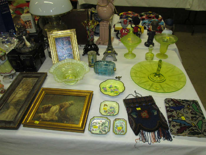 ANTIQUES & COLLECTIBLES AUCTION Monday ~ 9/30 ~ 6pm 3309 Lagrange St. Richard Leonard, Auctioneer Featuring: guns, lightening rod, beaded bags, vaseline glass & toys Westward Ho covered compote, mint condition Roseville Freesia vase, miniature Hummel figurines, Emmett Kelly figurines, ornate white wicker loveseat, wicker chair, table, lamp & magazine rack, boxes of fashion jewelry & vintage ephemera, Toledo Blade photos, political badges, old postcards, scrapbook, 2 pistols, .22 rifle, miniature cannon, straight razors, section of trans-Atlantic cable, fishing rods & reels, razor sharpeners, vaseline glass, antique beaded bags, old firetrucks, toy John Deere tractor & implements, HO Train set,...