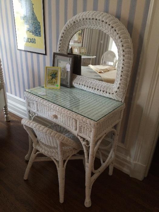 This is a lovely sale: Many pieces of quality furniture: Hickory Chair Co Chest and Plate Rack Cherry full bedroom suite - bed, dresser with oval mirror, chest of drawers Tea Table Side Board Ornate Mirrors Exercise Equipment Glass Top Dining table Many wonderful plants Baker's Rack Chairs Chaise Ethan Allen desk Upholstered Loveseat Wicker - Heywood Wakefield and others - many quality pieces Iron & Brass Full Bed Jenny Lind Full Bed Other beds/chest/dressers etc Room of children's items including vintage Christmas room Mackenzie Childs ornaments Collectible glass and china Kitchenware Quality lady's clothing including vintage Quality men's clothing...