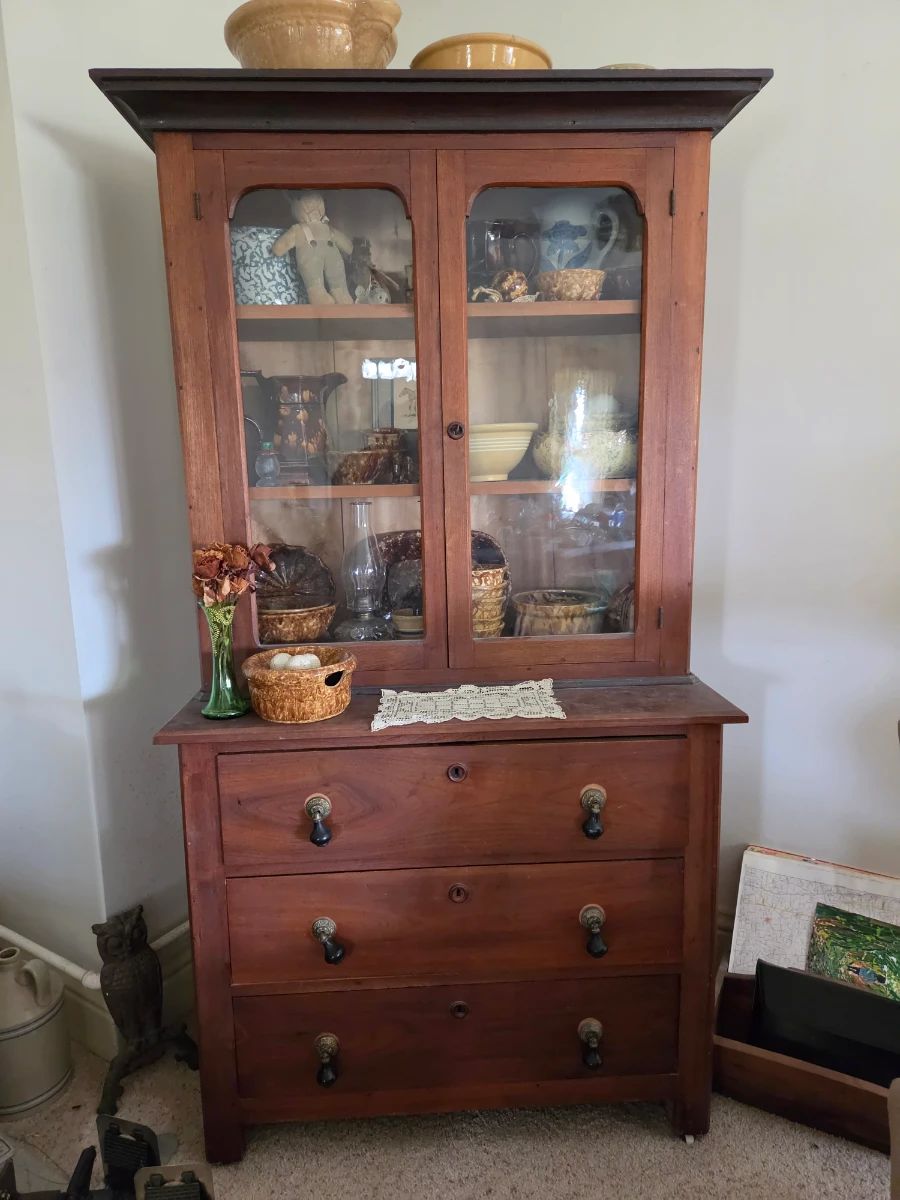 This estate is a time capsule of a small Ohio farm from the late 19th century to the present. *Art Noveau to Arts & Crafts - vases, jardinieres, framed art including yard longs, Royal Bayreuth, and clocks. *Country primitives to farm vintage - Rockingham, Transferware (including a large Aurora collection), Ironstone, storage jars and canisters of all sizes, Blue Willow, Depression Glass, CorningWare, Pyrex, utensils, and vintage soft goods. *Furniture including Victorian to Mission to vintage. Examples are cupboards, oak tables, dressers, oak desk, mirrors, porcelain top table, chairs, and the best Troy Sunshade kitchen chairs one can find. *Generations...