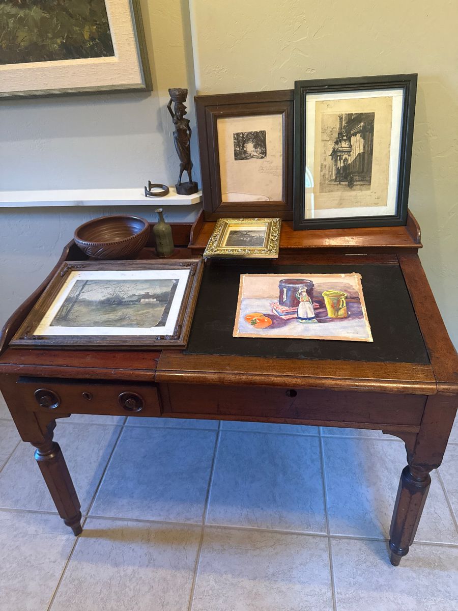 Household items: leather couch and chairs, refrigerator, deep freeze, bistro table, Persian rugs, bedroom suite with King bed; MCM coffee table Art: Oklahoma artists (Harold Holden sculpture, JJ McVicker, Leonard Good, Mike Larsen, Jean Richardson, Robert Bonaparte, Martha Avery and others); European artist paintings Antiques: including 1600’s captain’s desk, old butter churner and more Musical Instruments: drum set; guitar Tech: podcast system by Rode (never used) 1998 Pickup Truck - manual V8 - with only 130,000 miles Much more