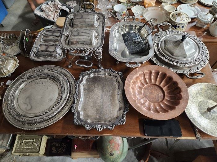 Large selection of antique glassware, Small selection of tools and hardware, Antique table cloths, runners, pillow cases, quilts and blankets, Asian antiques, Antique and modern furniture, Sports memorabilia and cards, Large selection of antique silver, silver plated copper, and brass, Old Navy uniform and other vintage clothing, Assorted lamps, Touch Tunes video Jukebox in working order, New Craftsman 50" double bagger (does not fit Craftsman mower that is for sale), Vintage jewelry, More photos will be uploaded as items are set up., Canned salsa, pickles, pepper and sweet relish, DISCOUNTED ON SATURDAY, AND DEEP DISCOUNTS ON SUNDAY!!