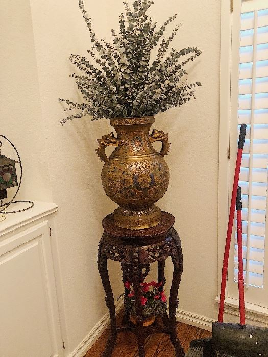 One of 2 sales in Norman this week!!! Vintage pocket and Bowie knifes Japanese bronze Champlevé vase with archaic designs and mythological animal handles. early 20th century, Meiji Period. OU Pendleton Blanket Anne Worsham Richardson prints Antique Victorian chairs Hickory bed frame and night stand Multiple vintage brass lamps Linens and bedding Vintage trunks Lots of records and record player Handtools Christmas Frankoma kitchen pottery Tupperware Kenmoore elite Washer & Dryer Newer Whirlpool side by side fridge Copper kitchenware 2 sets of Dining table and chairs Vintage gold tone mirror and sconces Like new royal blue leather sofa Two maroon...