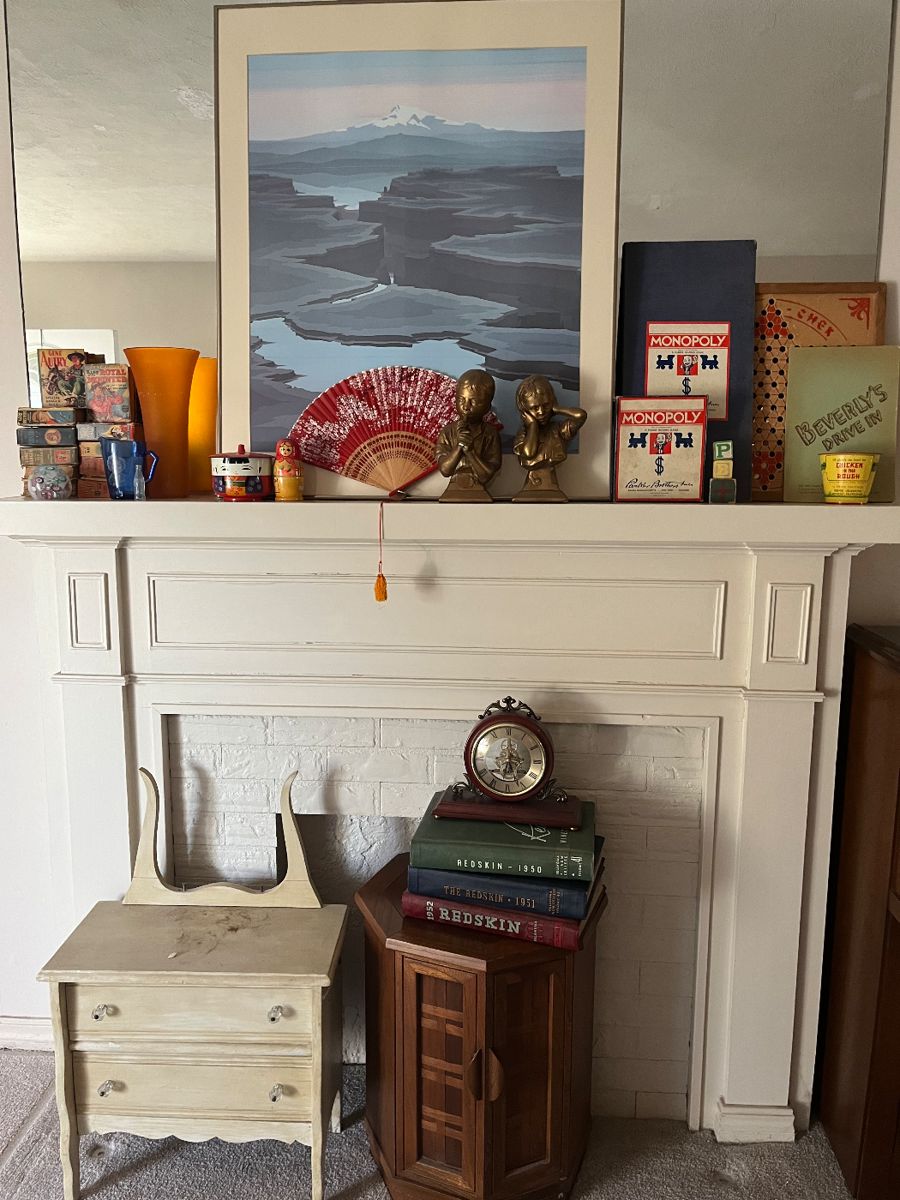 Sweet vintage home full of treasures! Midcentury dining table and chairs, furniture, vintage clothing, Christmas and holiday decor, jewelry, piano, curio cabinet, antique lawyers bookcase, large Hummel collection, china sets, vintage Pyrex, books, tools, outdoor decor, bench, vintage toys and games, antique trunk, antique bedroom set, bedding and quilts, tv and entertainment center, antique desk and chair, dining chairs, living room chair, hideabed sofa, vintage coffee table and end table, antique light fixtures, dresser, collectible houses, Hull pottery and Murano glass, garden and yard tools plus lots more!