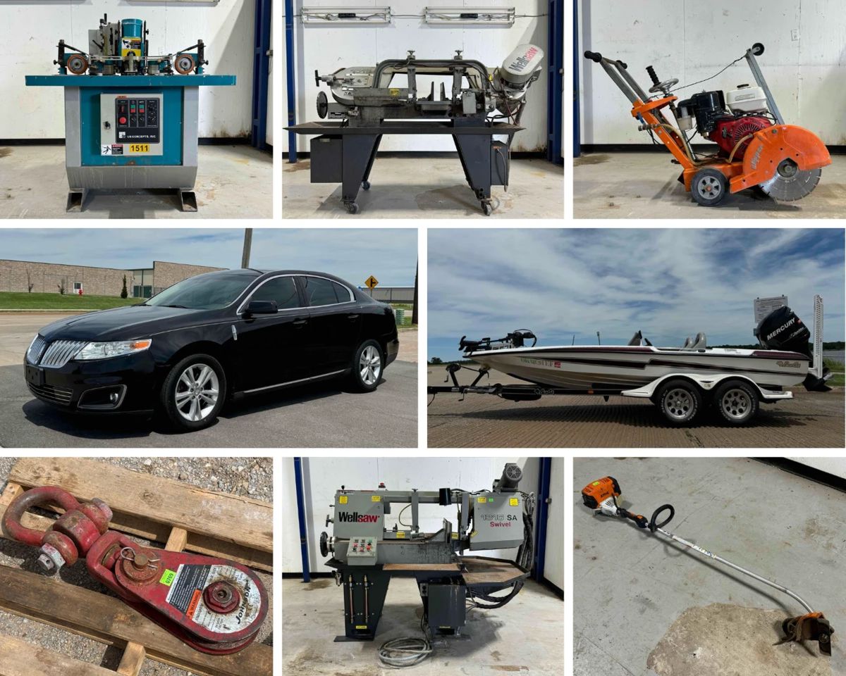 Machine Shop Tools, Wellsaw Bandsaws, Roper-Whitney Pexto Hydraulic Shears, Snatch Blocks, 2009 Pantera Bass Cat Boat, 1993 Stratos 2000 Center Console Boat, 2010 Lincoln MKS, Concrete Equipment, Diesel Heaters, Building Supplies, Lawn Equipment, Tires & Rims, Office Furniture and more. Be sure to look at videos of boats Preview Date: Thursday, June 27, 2024 from 4:00 pm to 6:00 pm Auction Starts Closing: Monday, July 1, 2024 at 10:00 am Pick Up Date: Tuesday, July 2, 2024 from 12:00 pm to 5:00 pm Pick Up Location: 9504 S Eastern Ave Oklahoma City, OK 73160 Items not picked up will be...