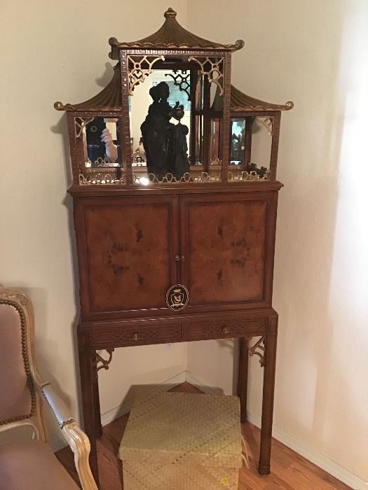 antique display case, French style bar, armoire, French chairs , Ethan Allen sofa table, chaise lounge , dressers, patio set, wrought iron garden chairs