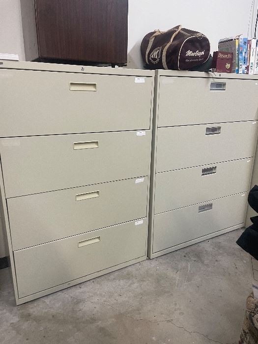 Lots of almost new and new office supplies. Hon four drawer file cabinets, computers, desks, computer chairs, waiting room chairs, office organizing items. Miscellaneous household items.