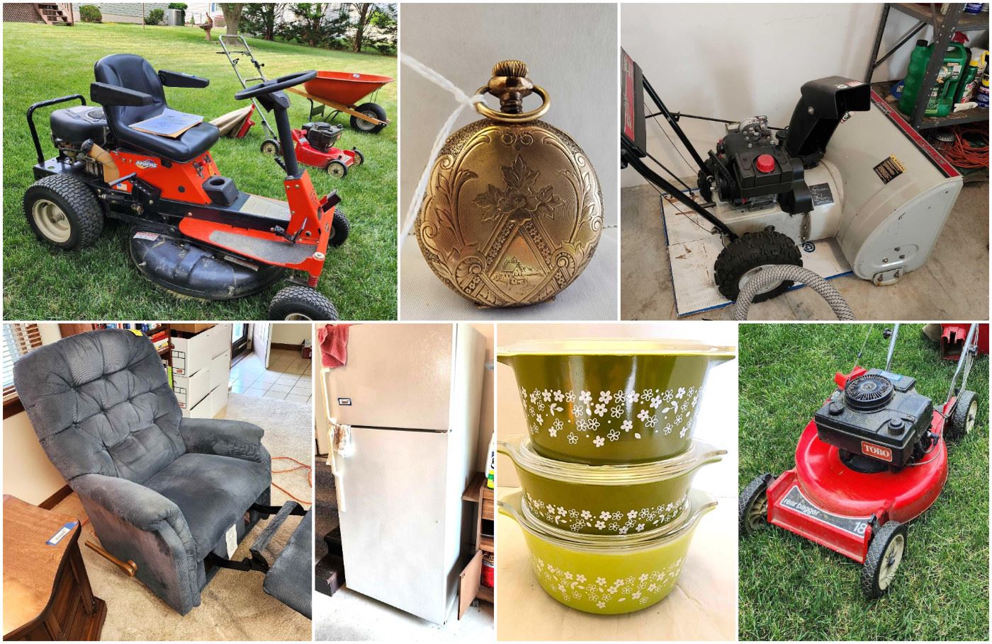 RIDING MOWER-SNOW THROWER-BULK LOTS OF NEW CRAFTING SUPPLIES-FURNITURE-PRIMITIVES-TOOLS