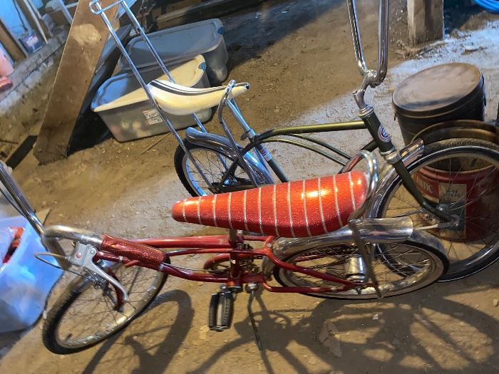 Downsizing after 60 years!! Fun finds in the Barn! La Crueset Cookware Fiesta Ware Rachel Baby Lock Sewing Machine Dozen of bins of Yarn and Material Sewing and Knitting Magazines and Tools Bob-Cat Riding Mower John Deere Riding Mower Craftsman Tiller Hand Tools Records, Tapes, DVD’s LG Washer and Dryer LG Gas Stove Books- some antique and comics Outdoor Chairs, Tents, etc Porch and Patio Furniture Antique Wash Stand Gardening equipment and Bird Feeders TWO Bikes with Banana Seats Two Vintage cruisers with baskets Copper Pots and Applesauce Pot with Stand Horse Bridles and Bits And MORE😆