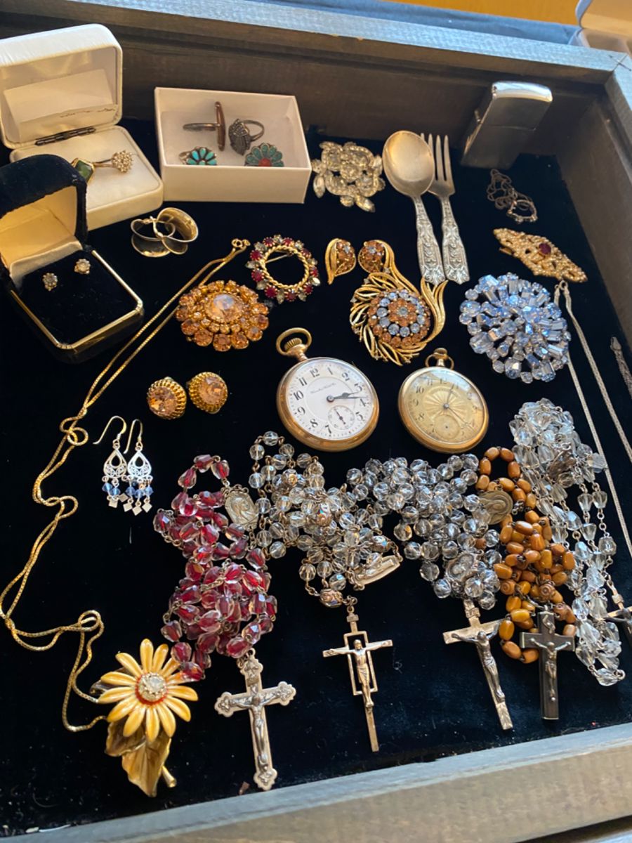 Albums, 45s, CDs, DVDs, VHS books, Jewelry Custom and some fine, puzzles, Gone with the Wind Collectibles, Lighted display cabinet, kitchenware, oak oak table and pressed back chairs, vintage hutch, buffet, brass king size bed, Halloween decor, white ceramic tree, large pig collection, victorian style wood desk, loveseat, outdoor furniture, Hollywood, Regency lamp, cameras, Mid Century Dutch art pottery, washer, dryer, Fridge, grill, woodworking tools, clamps, sanding belts, Kerosene Turbo Heater, Band Saw, Rockwell Lathe, Dewalt Table Saw and Miter Saw, Porch Swing, Men and Women’s Clothing, Women’s Shoes Size 7, Cedar and Blanket Chests, Wooden Bedroom Furniture, Safe, Collectibles...