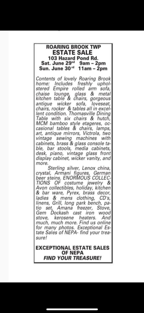 The address for this sale in Moscow, PA 18444 will no longer be shown since it has already ended.