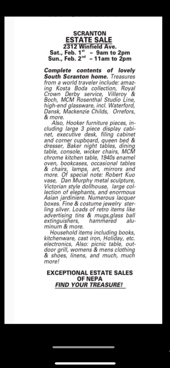 The address for this sale in Scranton, PA 18505 will no longer be shown since it has already ended. Dates