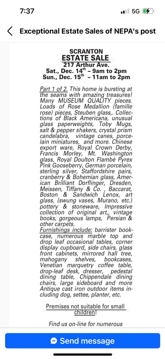 The address for this sale in Scranton, PA 18510 will no longer be shown since it has already ended. Dates
