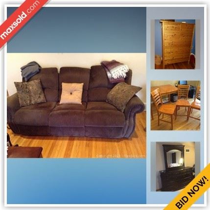 WHAT IS IN THIS AUCTION? This online auction features Living room reclining sofa and rocker, several Bedroom choices - Full bed suite, a trundle bed, two twin beds, two chests of drawers, nightstands; Home office - two executive desks, desk chair, 5 file cabinets; pub style dining table and three chairs. Electronics such as two Dell computer systems, Panasonic 42" TV, iHome docking system, Sony DVD player, Fellows shredder. Small Kitchen appliances, pots and pans. Art. Schwinn 2-bike rack and Thule 4-bike rack and more! HOW TO ACCESS THE AUCTION? Simply click here: MaxSold TO BID PLEASE REGISTER: Copy and...