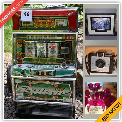 WHAT IS IN THIS AUCTION? This online auction features an Electric Fireplace, Slot Machine, Jewelry, Mid-Century Glassware, Dinnerware & Kitchen sundries, Cranberry glass Artisan Pottery including Roseville, Hull. Small Kitchen Appliances, Food prep, & gadgets, Pampered Chef, Framed "Successories" posters, LL Bean boots, and other Sportswear, Antique Baseball Glove, Cameras, Heirloom Dolls, Cigar boxes, Antique sewing machines, BBQ grills and accessories, Typewriter, Curio cabinet, Sheet Music & Songbooks, Breweriana and Barware, Vintage Vinyl LPs, Baby Items, Toys, Die Cast vehicles and much more! HOW TO ACCESS THE AUCTION? Simply click here: MaxSold TO BID PLEASE REGISTER: Copy and paste this...