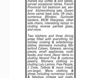 (24 Results)Listed below are all the estate sales that are currently scheduled for the Williamsport area. You may also be interested in estate sale companies in Williamsport.