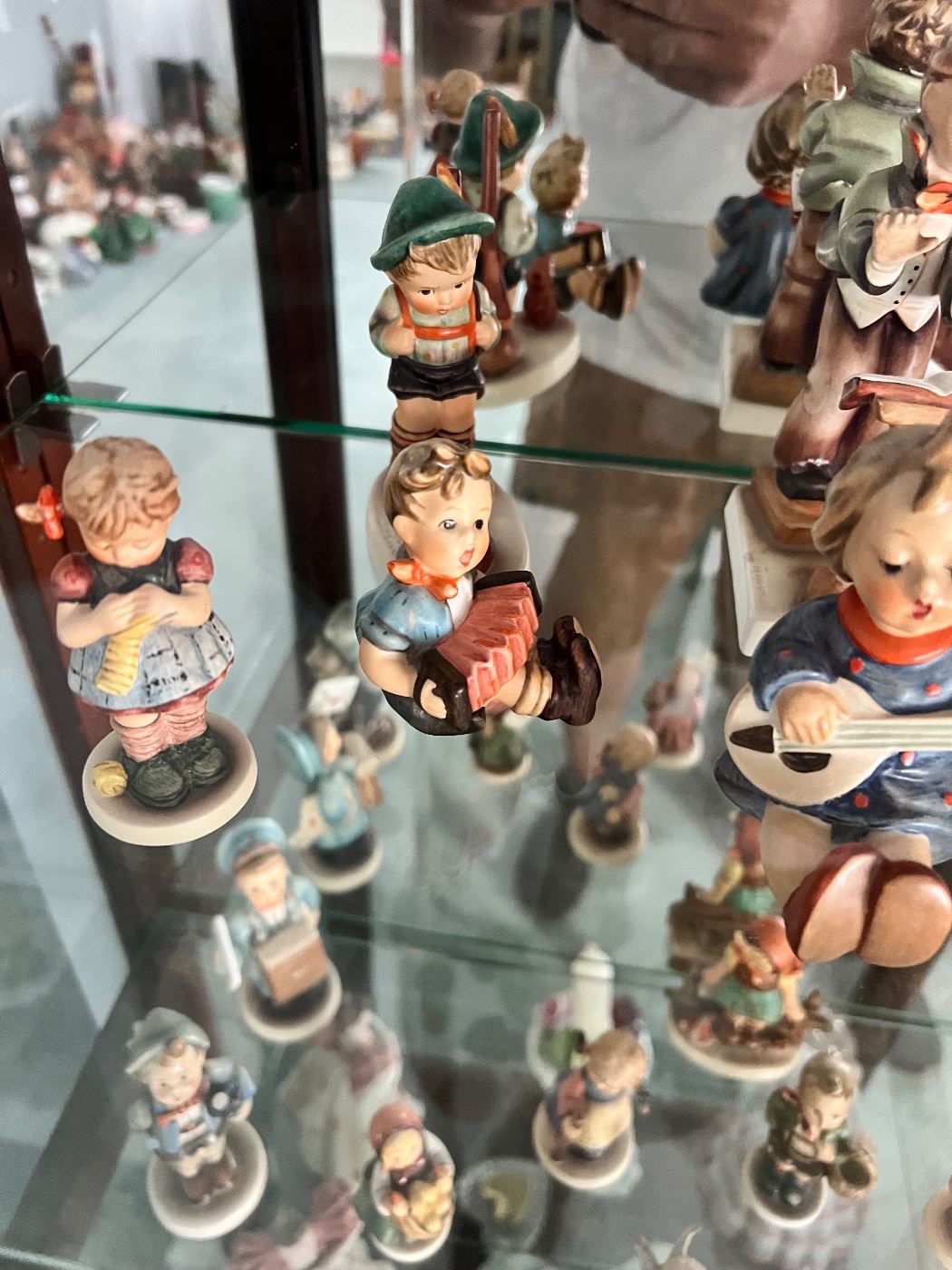 Hummels, some jewelry, some tools,  wicker set, drop leaf tables, china, Nintendo wii, furniture, vhs, Christmas, Halloween, yard tools, stamp collection  and more