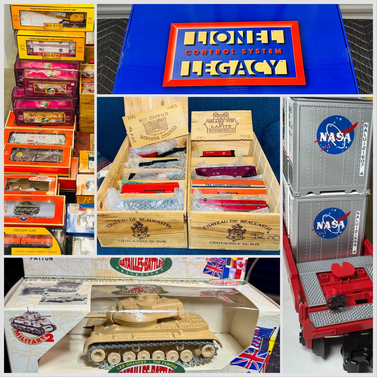WITH TRAIN SEASON AND CHRISTMAS ON THE HORIZON DONT MISS THIS OPPORTUNITY. AUCTION FEATURES: *PREMIUM O AND HO SCALE ROLLING STOCK, TRANSFORMERS, BUILDINGS, LOCOMOTIVES, PEOPLE, TREES, TRACK, COMPLETE SETS AND MORE.. * DIECAST TANKS, PLANES, TRUCKS, TRAINS, CARS, MOTORCYCLES AND MORE.. MAKERS INCLUDE, BUT NOT LIMITED TO: *LIONEL CORPORATION (PRE-WAR, POST-WAR, CURRENT) *RAILKING BY M.T.H. *M.T.H. ELECTRIC TRAINS *K-LINE ELECTRIC TRAINS *MARKLIN *3RD RAIL *SOLIDO *ERTL *THE INK WELL *JOAL *WALTHERS *MODEL POWER *LIFE LIKE AND MUCH MORE.. SEIZE THIS MOMENT IN TIME!!