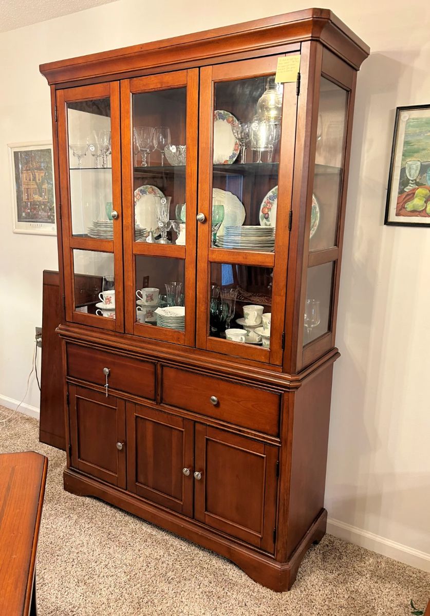 This lovely sale is located in the Rolling Green Village in Greenville, SC. At this sale, you will find a beautiful Pecan bedroom suite, a Pecan dining room suite, a loveseat, a rug from Morocco, a large quantity of dress and casual men's clothing - sizes L and XL, men's shoes, t-shirts, jeans, shorts, and etc., Christmas decor items including multiple nativity sets, outdoor furniture, large planters, a concrete bench, kitchen items, cooking and serving items suitable for cooking for large groups and entertaining, 12 place settings of gold plated bamboo pattern flatware from Thailand, gently used electric stove, 2...