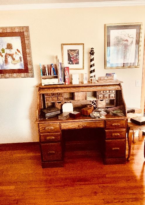 Vintage John Deere tractor, roll top desk Including a GARAGE that caters to the working person- electricians, plumber, handyman: to much to list.