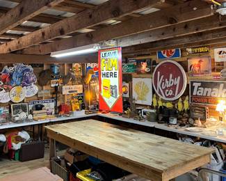 LARGE Advertising Sign Collection Soda Gas Oil Antiques + Military Clocks Tin Cans Jars ++ Much More