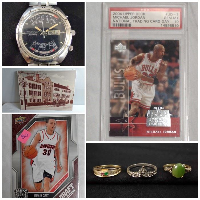 Collectables and jewelry are some of the great items you will find in this amazing auction. Available on online auction till 5/22. Bid in the link below. https://ctbids.com/estate-sale/15614 **Pick up will be Wednesday, May 25, 2022 1-6 PM. This 4th offering of items offers a 2004 Upper Deck Michael Jordan trading card, Kobe Bryant Trading cards, Vintage Hardbound Books in all subjects, Nemo Roskopf Pocket Watch, Ferdinand Keller Chromolithograph, Civil War collectors plates, Jim Booth Signed Print On Canvas, Gold and Sterling Silver Jewelry, Fishing Poles and Gear, Vintage Home Magazines And Pamphlets, and a lot more.