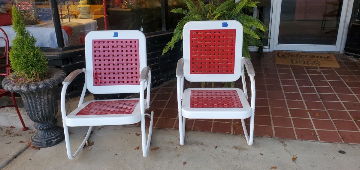We are FULL! We have several items from different estates. He have many tools, outdoor furniture, vintage gliders, metal signs, bottles, southern pottery, cast iron, Ethan Allen buffet, old light fixtures and floor lamps, paintings, framed prints, trimmers, rocking chair, perfume bottles, barrister bookcase, commercial KichenAid mixer w/attachments, electronics, butcher block table, barber chair, brand new M Army fatigues, flame mahogany drop front desk, Tom's Jar, fishing rods, reels and equipment, old beer can collection, Blue Willow and so much more.