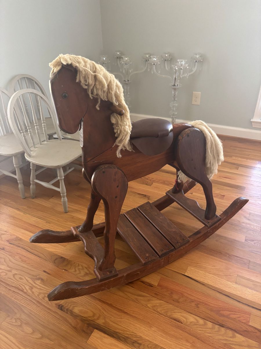 This home has a gorgeous pair of 36" crystal candlelabras, rugs, fainting couch, sofa, antique iron bed, wingback chairs, vintage sofa, twin beds, hand crafted wood rocking horse, dining room chairs, bar stools, ottoman, fur coat, books, cookbooks, tamborine, mattress set, dresser with mirror, grandmother clock, bookcase, antique empire "chester drawers", American Atelier "Athena" ironstone china, lamps, Disney, kitchen wares, what nots, Coca Cola bottles, silk plants, Christmas, tools, power tools, toys, play house with furniture, wood puzzles, light fixtures, commode, pedestal sink, garden treasures, garden tools, small appliances, Christmas, Halloween, Coleman, clothing, Kenmore 30 sewing machine, mirrors, chandeliers, some...