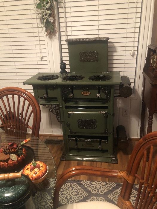 The Household and Collectable Estate of Cleta Faye Wagler Ms Wagler has a well kept home full of fine furniture and collectables .. Its Evident she bought the the Best!!! Some items include a Wynwood 4 poster Bedroom suite,Two matching curved drawer chests w marble tops, Newark Stoveworks Chicago Kerosene wood cookstove, Walnut German wall clock, Grandfather Clock, Brown leather Sofa w Power recliners on each end, Bamboo Patio Set, Several Fred Thrasher framed prints, Wood and Iron Benchs, Yard Art,Novelty Clocks, Doll Collection and much much more!!!! Ridgeway Grandfather Clock Walnut Wall Clock from Germany, Newark Stoveworks Chicago Kerosene...