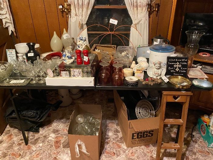 Clothes, tools, thread, material, shoes, holiday decorations, furniture, glassware, vintage items and more!