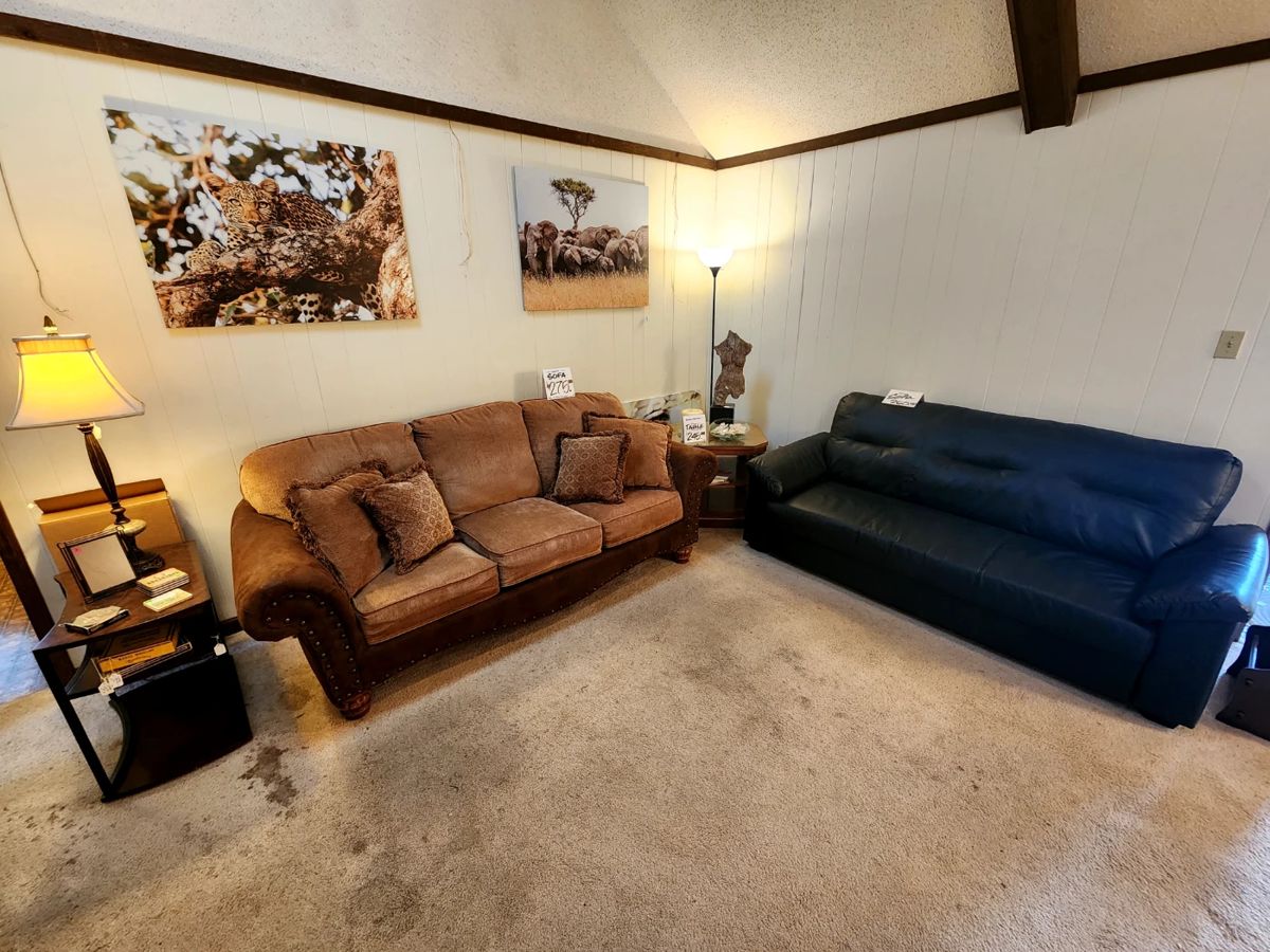 Bedroom furniture - Queen Bed - Queen Bed - King Bed - Dresser w/Mirror - Chest of Drawers - Antique Dresser w/Mirror Living room furniture - Antique sofa and side chair - Vintage marble top side tables and coffee table Great room furniture - Sofa - End table - Asian style chairs (2) Washer/Dryer Dining room furniture - Vintage table w/6 chairs and 2 leafs - Vintage double drop leaf table (project piece) - Vintage buffet/server - Vintage china cabinet/curio Shelving and storage Kitchen table w/4 chairs Occasional chairs Retro military clothing--Army and Air Force Vintage Boy Scouts of America...