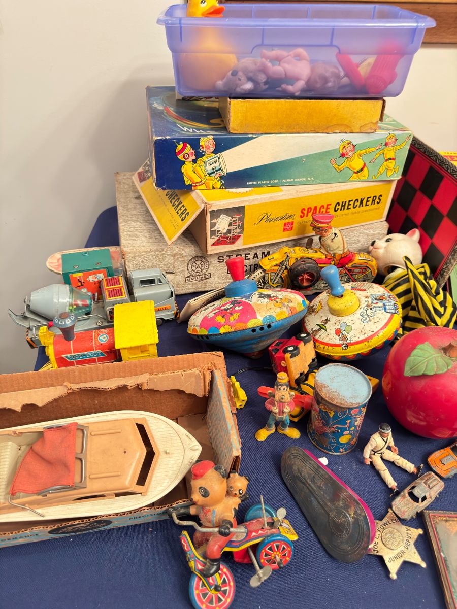 Vintage toys, antique toys, antiques, furniture, kitchenware, fridges, range, microwave, tools, picture frames, artwork, electronics, books, VHS, CDs, Christmas decorations.