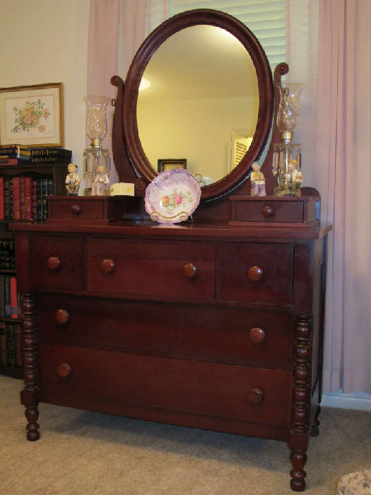BLAIR'S ESTATE SALE . THIS ESTATE WILL FEATURE AN EXCELLENT ASSORTMENT OF ANTIQUES AND COLLECTIBLES. THE HOME IS APPROXIMATELY 3,500 sqft AND IS FULL TO THE BRIM WITH GREAT ITEMS. . FURNITURE: EARLY AMERICAN STYLE SOLID CHERRY BEDROOM SUITE BY DAVIS CABINET CO., 1940’s RADIO TABLE, SHERATON MAHOGANY SERVER, VINTAGE PLATFORM ROCKER W/ FOOTSTOOL, EMPIRE ERA MIRROR, WALNUT MARBLE TOP DRESSER, VENETIAN GLASS MIRROR, OAK PEDESTAL TABLE W/ 4 CHAIRS, ENGLISH MAGHOGANY CHEST, SET OF TWIN PINAPPLE POSTER BEDS, DEPRESSION ERA MAHOGANY CHINA CABINET, DROP LEAF MAHOGANY TABLE W/ 4 CHAIRS, FOLD OUT LIQOUR CABINET, MAHOGANY DRUM TABLE, SOLID CHERRY...