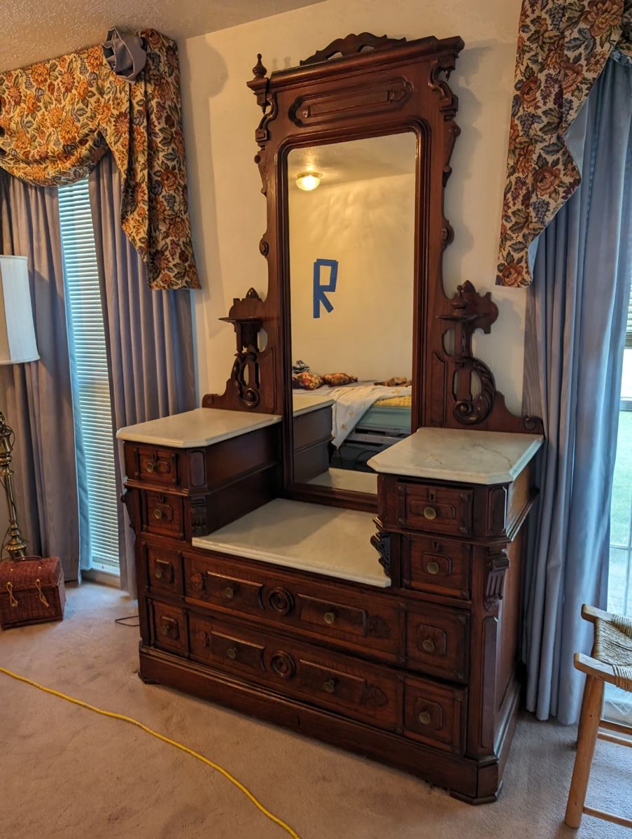 There are 2 vehicles we will be taking offers on til Sunday around 12. 1991 Lincoln Towncar with 200K- cranks but needs a battery and love! 1977 Buick Electra Limited with only 50k miles! Needs love but a great project car! This home has a beautiful antique Victorian dresser, antique oak dresser with mirror, vintage French Provincial chair, beautiful French Provincial upholstered head board, vintage chest on chest, Victorian style bench, beds, pair of recliners, pair of wingback chairs, beautiful antique mirror, beautiful antique pier mirror with marble top, pretty round marble top cherry tables, mid century 3 drawer chest,...