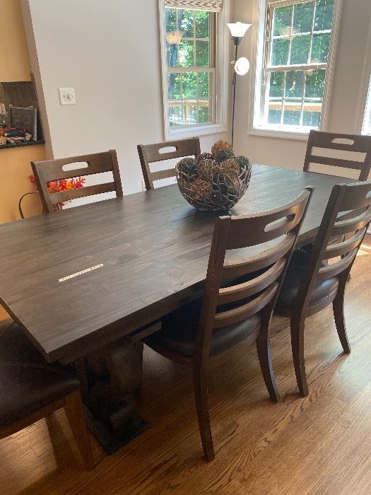 Furniture: Robin Bruce Tan Couch $150 Kincaid Lamp Table $150 Beautiful Van Shing Co Dining Table and 6 Chairs $850 Solid Cherry corner cabinet hand made reproduction (from green county, originally $1595) $850 World Market Wooden Chair $75 Decorative wooden cabinet $75 Hooker Filing cabinet $125 Antique sewing chair $20 Decorative wooden wall shelf $40 Bombay standing world globe $75 Antique table $50, red side table $25, antique game chest $65, bookcase $50, TV cabinet $75, small antique card table $30, small wooden stools. $10/piece, full/queen wooden post bed $100, Queen Platform bed with mattress $125, two black wooden rocking...