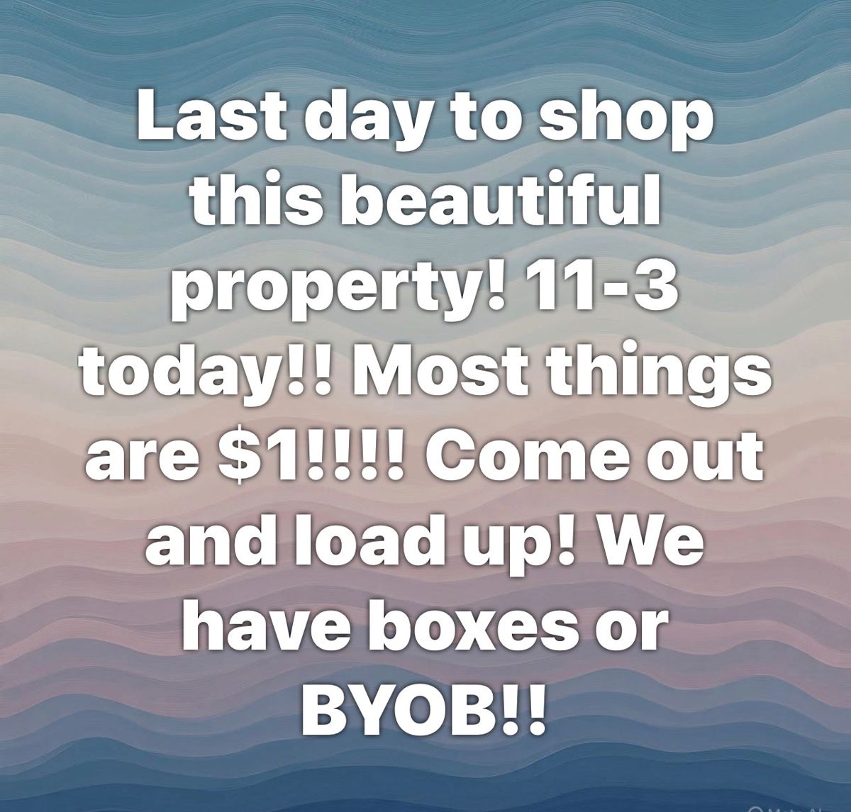 Loading assistance for smaller items will be available. It would be best for those interested in larger items to come prepared to load. Buyers will have 2 days after the end of the sale to pickup all purchased items.