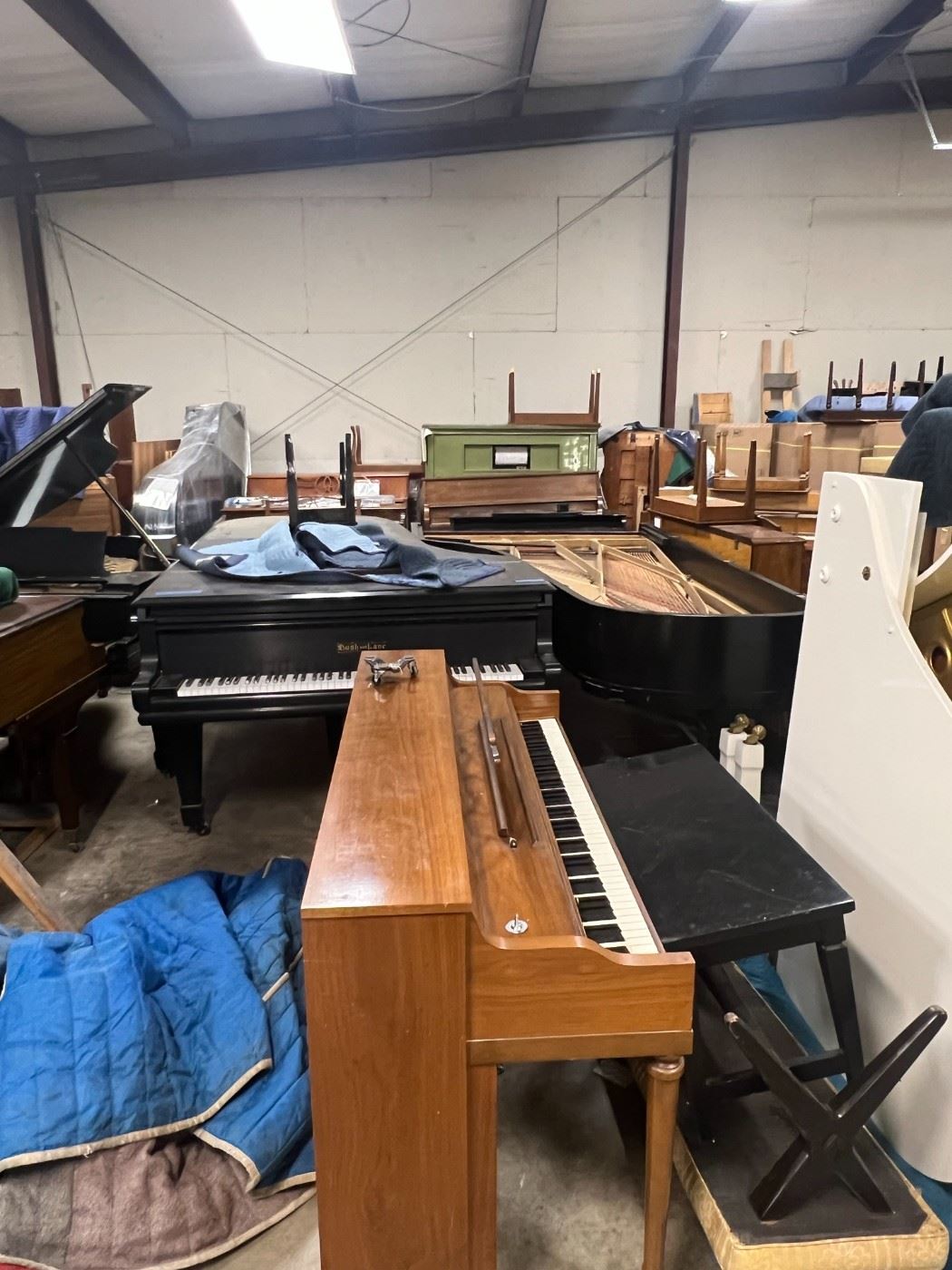 This is a Musical instrument warehouse that is closing. There are lots of pianos, band instruments, some guitars, and other stuff. and furniture, and fixtures that all must go. Condition is AS-IS and all sales are final. Please inspect prior to buying. Please bring a truck to load what you buy. We do offer delivery but it is an added charge. This warehouse in not open to the public. This is the only sale we will have so please come ready to make a decision. NO holds. Will post pictures next week! There are instruments that are not for sale...