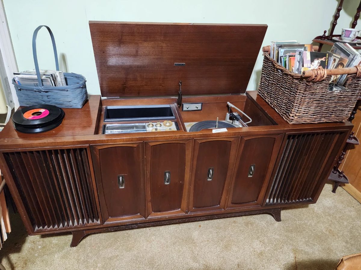 Antique bed w/ head board & foot boards Antique dresser/mirror Antique chest Book case Night stand End table Sectional cloth couch Recliner Antique accent chairs Antique stereo console Round kitchen table w/ 4 chairs Dining room table w/ 6 chairs Lamps Hover round electric scooter Antique accent tables Albums & 45s CDs Cassettes Silver ware set ( Silver plated) Pink depression glass Green fire king cups Knick knacks Sony stereo Hutch Fine china Glassware pots & pans ( saladmaster) Rainbow vaccuum Large Antique armoire Quilts & Bedding Antique cookie jars ( manmie) Washer & dryer Refrigerator Gas stove Tread mill...