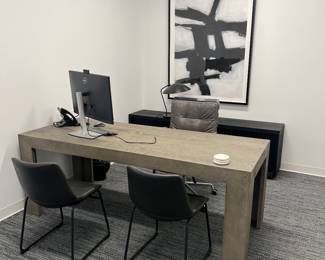 What’s Available?The suite was furnished in late 2022 with premium Restoration Hardware pieces, most barely used and in excellent condition. Think leather couches, leather chairs, executive desks, conference tables, lamps, side tables, coffee tables, a stainless steel refrigerator, artwork, artificial plants,• Additional pieces like the COI Ravelle Linear Chandelier, Oscar Leather Chairs, Bezier Panel Media Consoles, and more —all high-end quality at fair market prices.