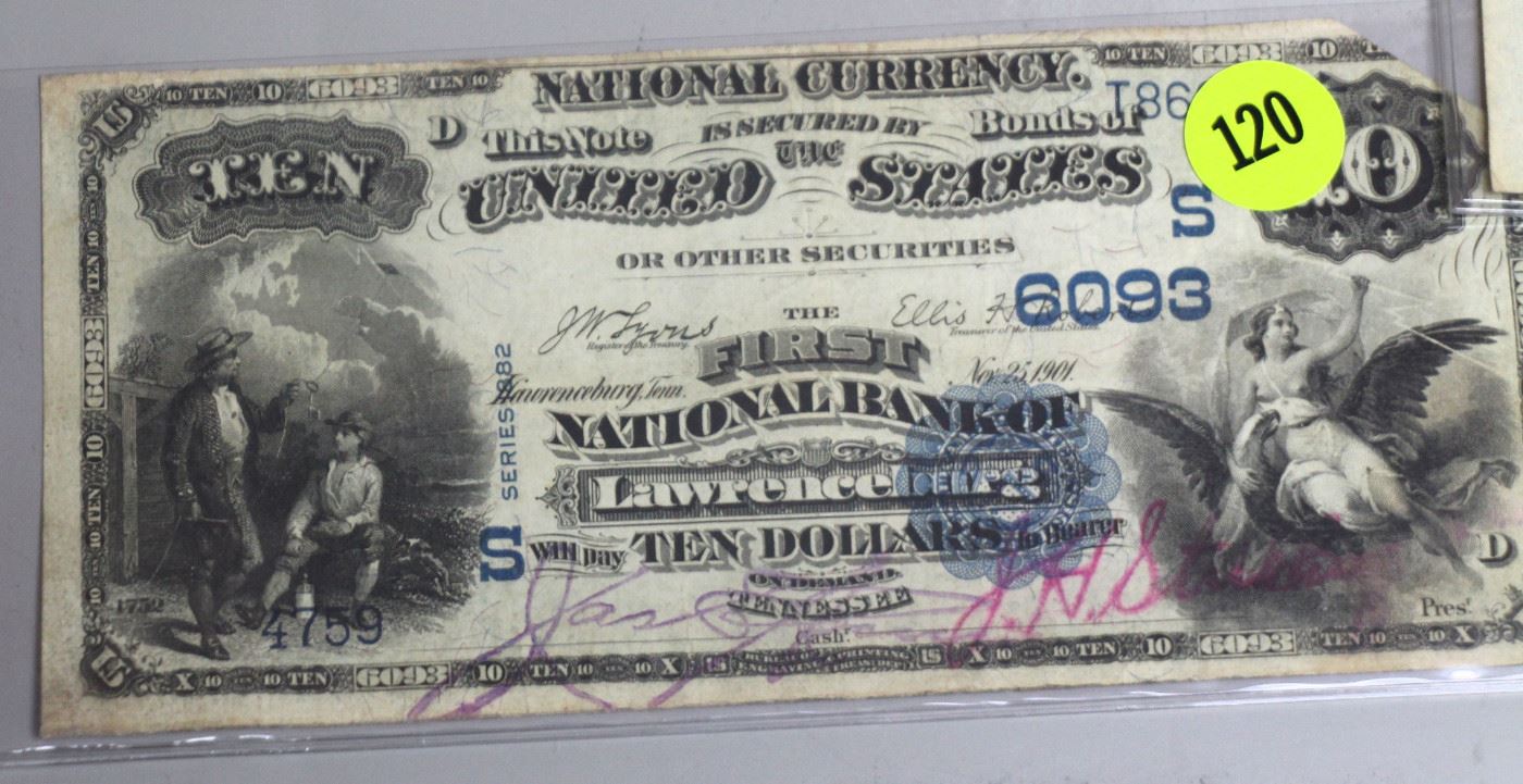 ONLINE Coin Auction Charles (Wally) Moore Estate ONLINE ONLY auction begins closing on Friday June 30, at 5 pm 1882 Signed Lawrenceburg National Currency note 1913 Columbia National Currency note 1908 Mt. Pleasant National Currency note 1880 $20 US note Carson City & Many Morgan & Liberty silver dollars Silver Eagles Silver halves, quarters, & dimes Shield, buffalo, & Jefferson nickels Silver Certificates 1/10 gold piece 1/10 platinum proof Gold Notes 1877s trade dollar Half cents Large cents Indian head & wheat pennies Half dimes Commemorative Silver halves Several partial & full coin book sets MANY proof & mint sets...