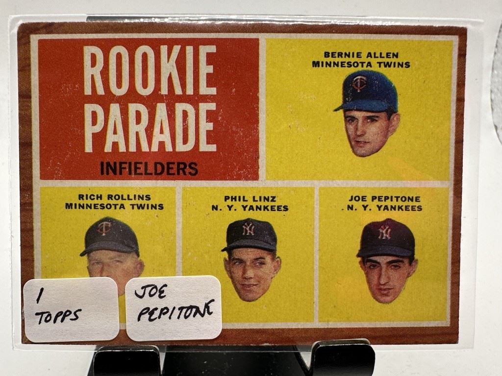 Lot Number Lead 1 1962 TOPPS ROOKIE CARD JOE PEPITONE / LINZ / ALLEN 2 1967 TOPPS ROD CAREW & HANK ALLEN ROOKIE CARD 3 BOB BAIRD REPRINT CARD 4 2004 FLEER HANK BLALOCK AUTOGRAPHED CARD 5 1979 TOPPS BOBBY BONDS AUTOGRAPHED CARD PSA/DNA 6 1963 TOPPS ROOKIE CARD BOULDIN/ SMITH/ NEWMAN/ ++ 7 1962 TOPPS ROOKIE CARD BOB UECKER CAMILLI + 8 1979 TOPPS BOBBY BONDS AUTOGRAPHED CARD 9 1962 TOPPS BOB UECKER ROOKIE CARD / EDWARDS PLUS 10 1952 TOPPS MERRILL COMBS PSA 6 11 1952 TOPPS MERRILL COMBS 12 2014 TOPPS AUTOGRAPHED SHIN SOO CHOO W COA...