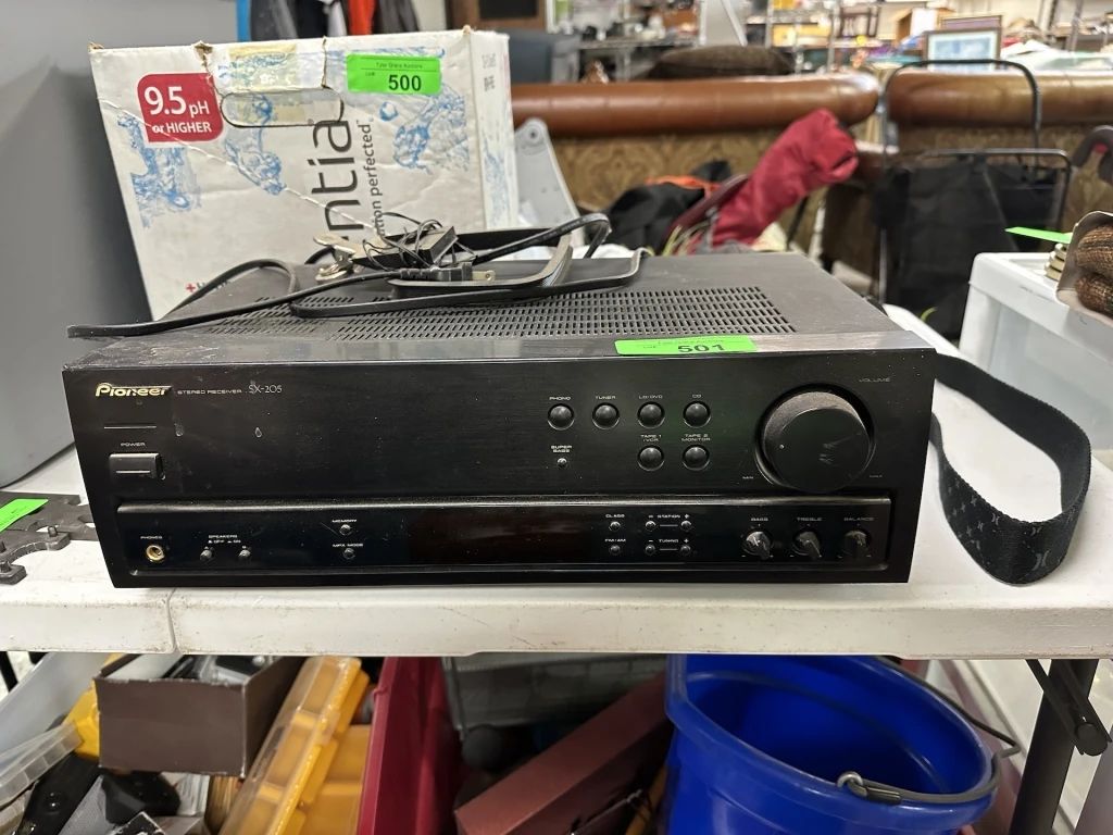 Lot Number Lead 501 PIONEER STEREO RECEIVER SX205 502 3PC GUN BENCH TOOLS AR 15 MULTI TOOL ETC 503 LARGE BIN OF MISC 504 CONTENTS UNDER THE TABLE 505 DEER ANTLER 506 NICE TOOLBOX W CONTENTS GUN PARTS MORE 507 SONY SURROUND SOUND / RECEIVER & SPEAKERS W SUB 508 PIONEER SX-828 RECEIVER NICE 509 LARGE LOT OF BOOKS 510 LARGE BIN OF MISC 511 CONTENTS OF BIN / RIFLE STOCK ETC / FOREARM 512 LARGE WOOD CUTTING BOARD 513 LOT OF ELECTRONICS / CELL PHONES 514 NICE PROTECTIVE CASE 515 APPLE IPHONE UNLOCKED A1533 5S 516 US AIR FORCE...