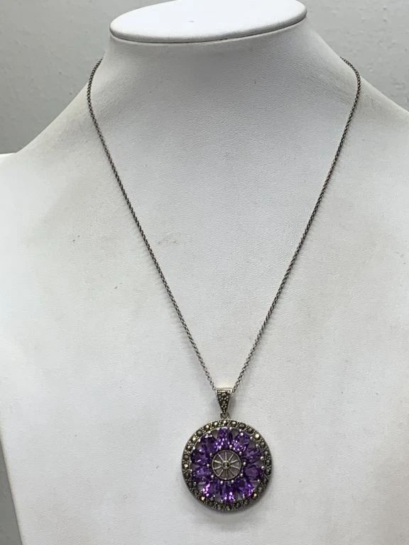 Lot Number Lead Description 1 STERLING SILVER & SAPPHIRE NECKLACE 2 SIGNED ART BROOCH 3 950 SILVER PIERCED EARRINGS-PERU 4 SARAH COVENTRY 1973 LIMITED EDITION CROSS NECKLACE 5 PAIR OF LEE SANDS STONE PIERCED EARRINGS 6 STERLING SILVER BEADED BRACELET 7 RJ GRAZIANO WATCH 8 STERLING SILVER HEART & CHARMS NECKLACE 9 CATO RELIGIOUS WATCH W/ INTERGHANGEABLE BANDS 10 SIGNED GRAZIANO BEAD & CHARM NECKLACE 11 VINTAGE CLIP ON EARRING LOT 12 STERLING SILVER & STONE CLIP ON EARRINGS 13 SIGNED NAPIER TWISTED ROPE CHAIN BRACELET 14 STERLING SILVER & GEMSTONE RING 15 SARAH COVENTRY LEAF BROOCH 16 STERLING SILVER...