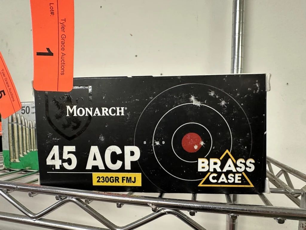 Lot Number Lead 1 MONARCH 45 ACP 230FR FMJ AMMUNITION AMMO BULLETS 2 CCO MINI MAG 22LR HP AMMUNITION AMMO BULLETS 3 9MM AMERICAN AMMUNITION AMMO BULLETS 4 FULL BOX FRONTIER 5.56 NATO 55 GR FMJ 160 RDS 5 LELLIER & BELLOT 38 SPECIAL AMMUNITION AMMO BULLES 6 FEDERAL 45-70 GOVT AMMUNITION AMMO BULLETS 7 45 AUTO 230 GR FMJ AMMUNITION AMMO BULLETS 8 X-TAC 5.56MM 55 GR FMJ-BT AMMUNITION AMMO BULLETS 9 X-TAC 5.56MM 55 GR FMJ-BT AMMUNITION AMMO BULLETS 10 TULAMMO .308 150GR AMMUNITION BULLETS AMMO 11 FIOCCHI .223 REM POLYMER TIP HP AMMUNITION BULLETS 12 NOSLER MATCH...