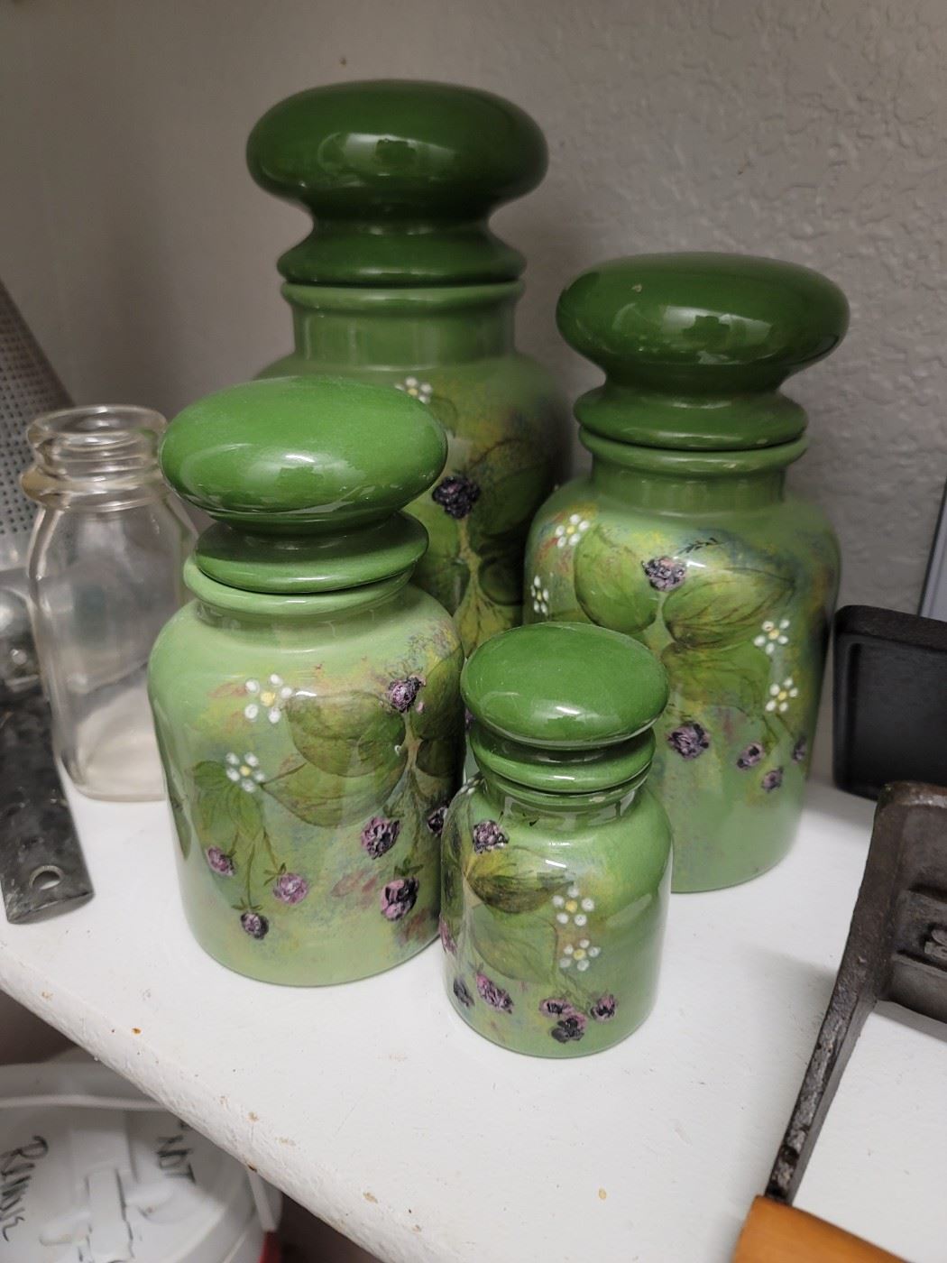 Wild about it all. From book lovers, fine China and pottery collectors to the Teachers & Preachers….we have it all Kitchen/Dining/Living Room · Whirlpool 25 ft cubic Refrigerator · Hamilton Beach · Sunbeam · Proctor Silex · Crockpot · International Silver Company · Nippon China · Hull · Milk Glass · Johann Seltmann Vohenstrauß · Glassware · Dishes · Bakeware · Corningware · Tupperware · Rodolsadt · Delft · Rosina · Frankoma Pottery · Home Interior · Pine Hutch · Buttermilk white and pine finish square kitchen table with 4 matching chairs · Olive Green, Tufted Sofa · Large Coca...